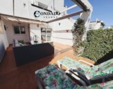 All three bedrooms are decorated in light, contemporary tones and include built-in wardrobes offering ample storage. The master bedroom has direct access to a spacious private rear terrace, ideal for enjoying a quiet breakfast or relaxing in the morning sun. The second bedroom is set up a single beds, while the third bedroom also offers a single bed, making the property ideal for families or visiting guests.