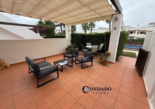 Welcome to J1583, a stylish and move-in-ready three bedroom apartment in Jardín 13, one of the most family-friendly areas within the sought-after Condado de Alhama Golf Resort. Situated in Murcia, where the sun shines over 300 days a year, this ground-floor property offers a relaxed Mediterranean lifestyle surrounded by nature and community amenities.