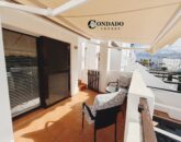 Private stairs lead to a large roof solarium — an exceptional outdoor living space furnished for relaxation and entertaining. Enjoy open views, sunshine throughout the day, and the added luxury of a solar shower, perfect for cooling off while enjoying the Spanish climate.